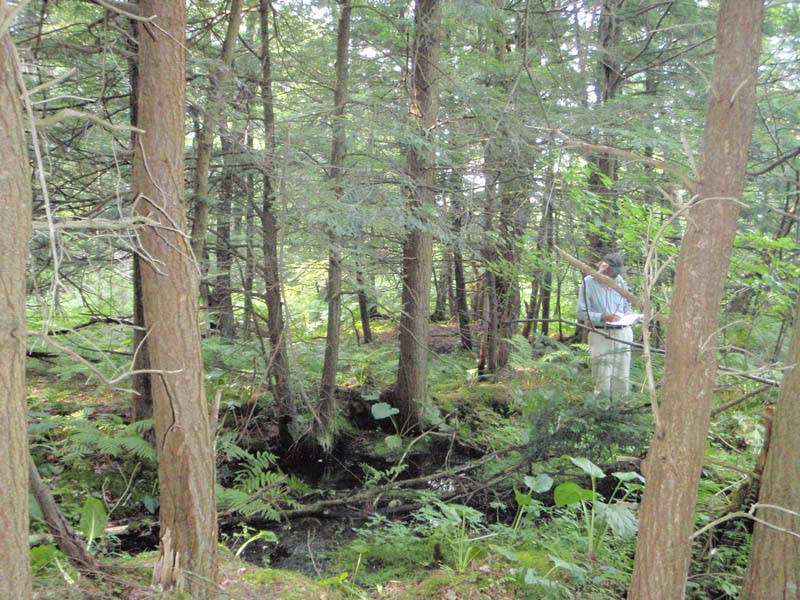 Extraction, drilling, mining, or other activities that impact the bedrock or flow of groundwater should not be undertaken within half a mile of a spring run wetland without a thorough understanding of bedrock layers and groundwater flows. Groundwater flow patterns do not always mirror surface watersheds, and in some cases aquifers may be contiguous over large areas. Seepage wetlands are also sensitive to trampling and other physical disturbance from recreational activities; trails should be sited away from the wetland, or elevated structures employed to prevent traffic in the wetland. A natural buffer around the wetland should be maintained in order to minimize nutrient runoff, pollution, and sedimentation. The potential for soil erosion based on soil texture, condition of the adjacent vegetation (mature forests vs. clearcuts), and the topography of the surrounding area (i.e., degree of slope) should be considered when establishing buffers. The buffer size should be increased if soils are erodible, adjacent vegetation has been logged, and the topography is steep as such factors could contribute to increased sedimentation and nutrient pollution. Direct impacts and habitat alteration should be avoided (e.g., roads, trails, filling of wetlands) and low impact alternatives (e.g., elevated footpaths, boardwalks, bridges) should be utilized in situations where accessing the wetland cannot be avoided. Care should also be taken to control and prevent the spread of invasive species within the wetland. Alterations to groundwater sources should be minimized.