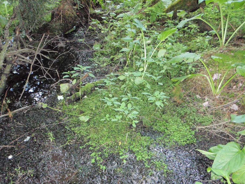 - Vegetation surrounding the spring is dominated by golden saxifrage (Chrysosplenium americanum), Pennsylvania bittercress (Cardamine pensylvanica), and/or the exotic species watercress (Nasturtium officinale).