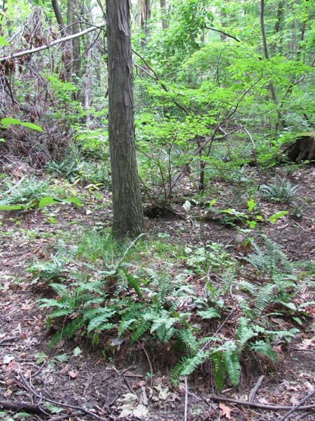 These wetlands are specific to the Erie Lake Plain. While the usual aspect is that of a forest, on wetter and/or more recently disturbed sites, there may be a more open canopy. The topography is flat overall with a hummock and hollow microtopography, often with small vernal ponds scattered throughout. The water table is near the surface most of the year. The dominant tree species are American elm (Ulmus americana), red green ash (Fraxinus pennsylvanica), pumpkin ash (Fraxinus profunda), and silver maple (Acer saccharinum). Other trees commonly present include red maple (Acer rubrum), eastern cottonwood (Populus deltoides), basswood (Tilia americana var. americana), yellow birch (Betula alleghaniensis), and sourgum blackgum (Nyssa sylvatica). The shrub layer is usually dominated by spicebush (Lindera benzoin), although this is likely a result of deer over-browsing. The herbaceous layer may be very diverse, representative species include sedge (Carex bromoides), sedge (Carex intumescens), short hair sedge (Carex crinita var. crinita), spinulose wood fern (Dryopteris carthusiana), sensitive fern (Onoclea sensibilis), purplecress (Cardamine douglassii), cinnamon fern (Osmunda cinnamomea), and blue marsh violet (Viola cucullata). This community type in Pennsylvania remains on only a handful of sites.