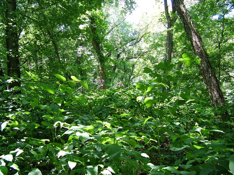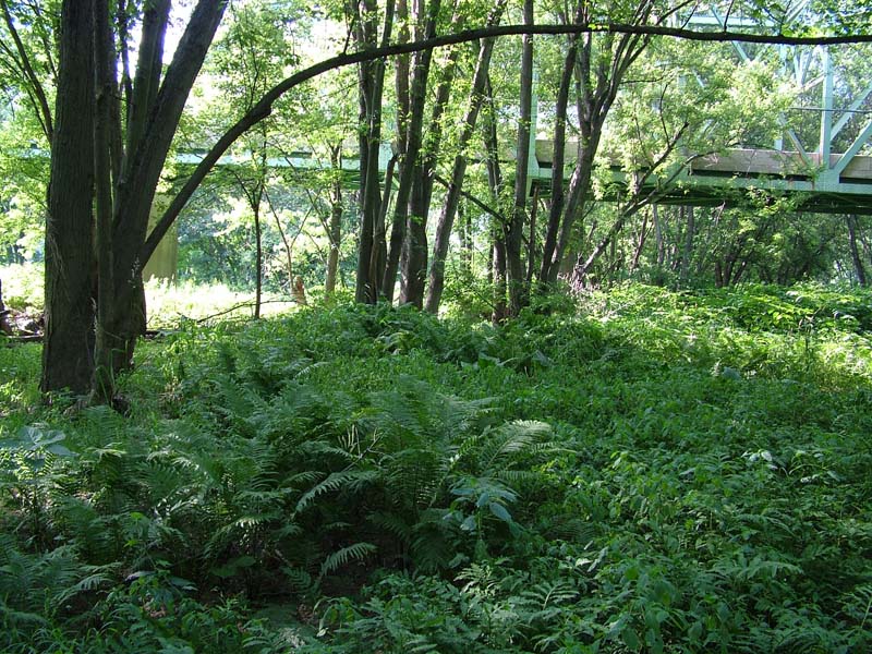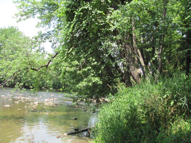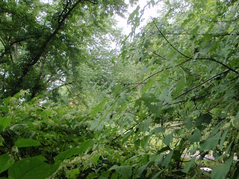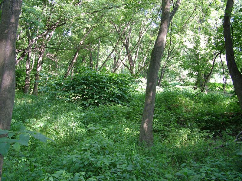 Shrubs include silky dogwood (Cornus amomum), gray dogwood (Cornus racemosa), poison-ivy (Toxicodendron radicans), spicebush (Lindera benzoin), elderberry (Sambucus canadensis), and arrow-wood (Viburnum recognitum). Herbs include ostrich fern (Matteuccia struthiopteris), jewelweed (Impatiens capensis), pale jewelweed (Impatiens pallida), Turk’s-cap lily (Lilium superbum), clearweed (Pilea pumila), rice cutgrass (Leersia oryzoides), sensitive fern (Onoclea sensibilis), Jack-in-the-pulpit (Arisaema triphyllum), green-dragon (Arisaema dracontium), stout woodreed (Cinna arundinacea), false nettle (Boehmeria cylindrica), common blue violet (Viola sororia), and jumpseed (Persicaria virginianum). Commonly occurring invasive plant species are multiflora rose (Rosa multiflora), Morrow’s honeysuckle (Lonicera morrowii), common privet (Ligustrum vulgare), Japanese barberry (Berberis thunbergii), Japanese stiltgrass (Microstegium vimineum), Japanese knotweed (Fallopia japonica), and garlic-mustard (Alliaria petiolata).