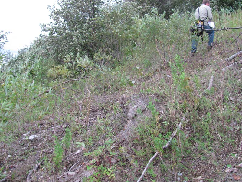 The bluff face communities are characteristically open with a mixture of shrubs and sometimes with scattered trees. This is a very dynamic system and the structure of the vegetation depends largely on its successional status. Recently slumped areas are first colonized by bryophytes and Equisetum spp. (horsetails). As the substrate becomes more stable, and organic matter accumulates, graminoids, other herbs, and shrubs colonize the seep. Eventually, due to erosion from below and perhaps also because of the weight of the vegetation and organic matter, the entire community will slump or slide downslope and the cycle begins again.