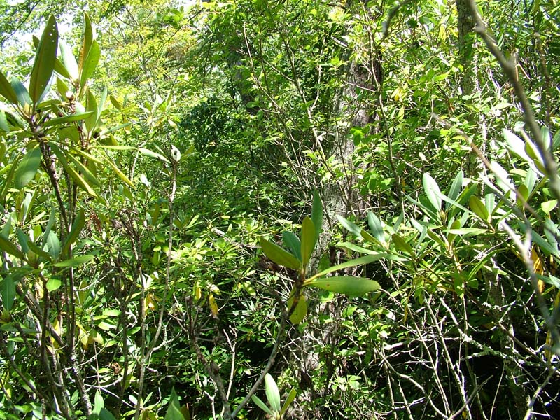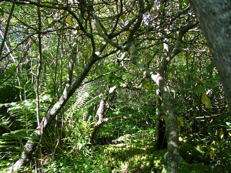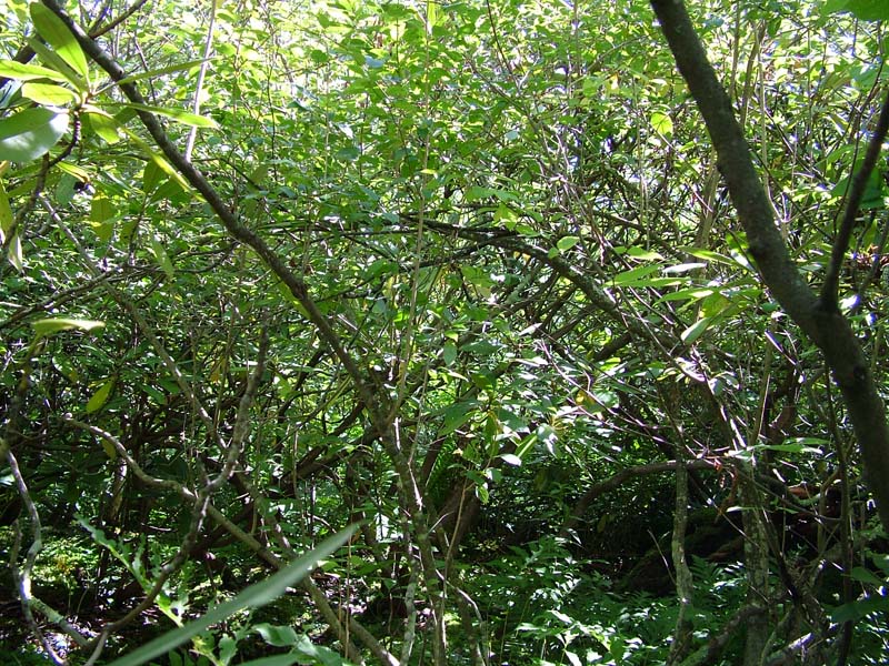 - Shrub layer is extremely dense with shrubs growing on hummocks and is dominated by highbush blueberry (Vaccinium corymbosum)