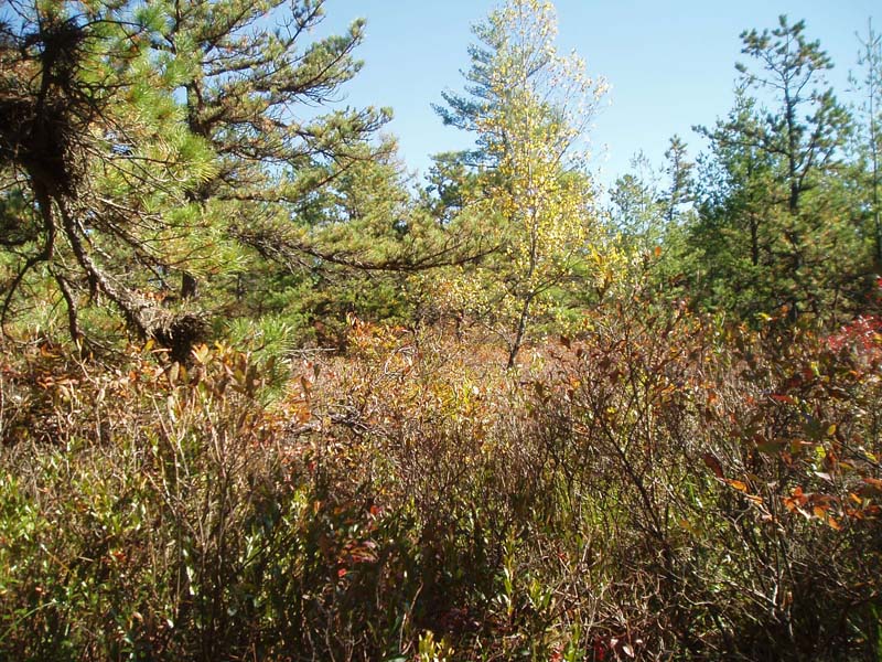 - Dominated by pitch pine (Pinus rigida) and leatherleaf (Chamaedaphne calyculata)