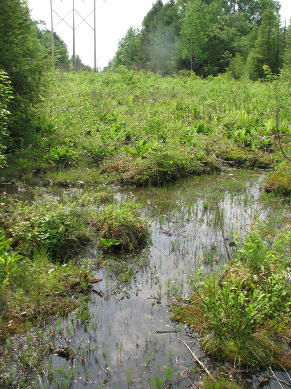 A natural buffer around the wetland should be maintained in order to minimize nutrient runoff, pollution, and sedimentation. The potential for soil erosion based on soil texture, condition of the adjacent vegetation (mature forests vs. clearcuts), and the topography of the surrounding area (i.e., degree of slope) should be considered when establishing buffers. The buffer size should be increased if soils are erodible, adjacent vegetation has been logged, and the topography is steep as such factors could contribute to increased sedimentation and nutrient pollution. Direct impacts and habitat alteration should be avoided (e.g., roads, trails, filling of wetland) and low impact alternatives (e.g., elevated footpaths, boardwalks, bridges) should be utilized in situations where accessing the wetland cannot be avoided. Care should also be taken to control and prevent the spread of invasive species within the wetland. Alterations to groundwater sources should be minimized.