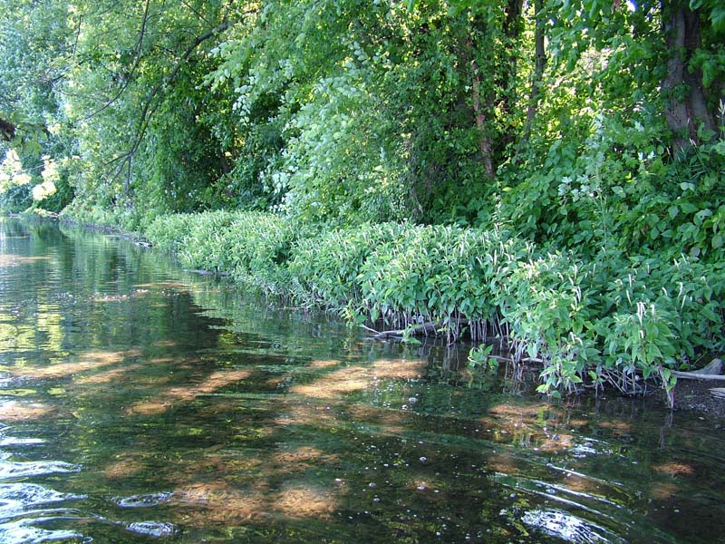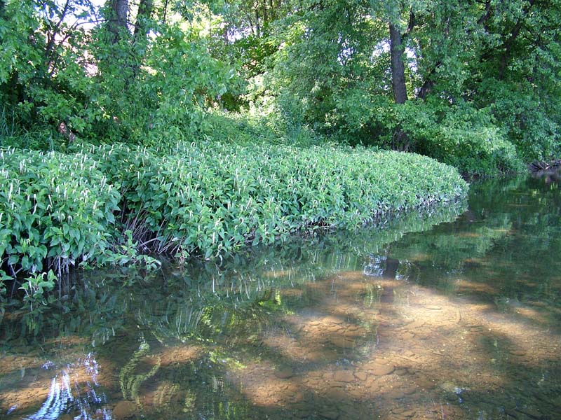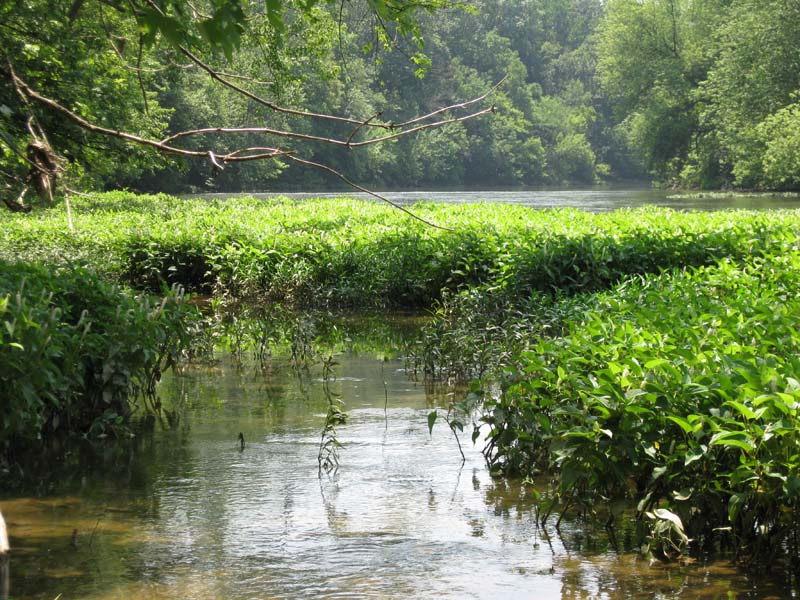 Water-willow (Justicia americana) is dominant in Water-willow Emergent Bed communities. Water-willow Emergent Bed are more typically found in faster moving, high energy systems.