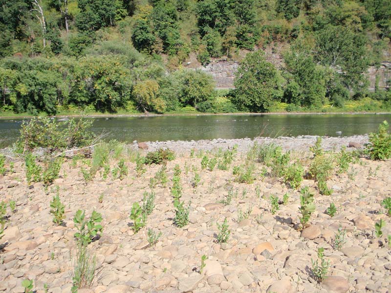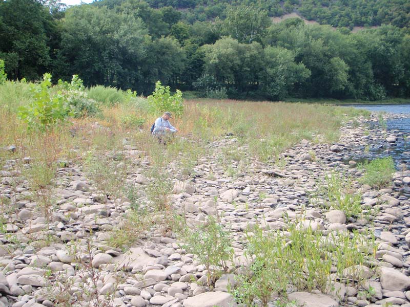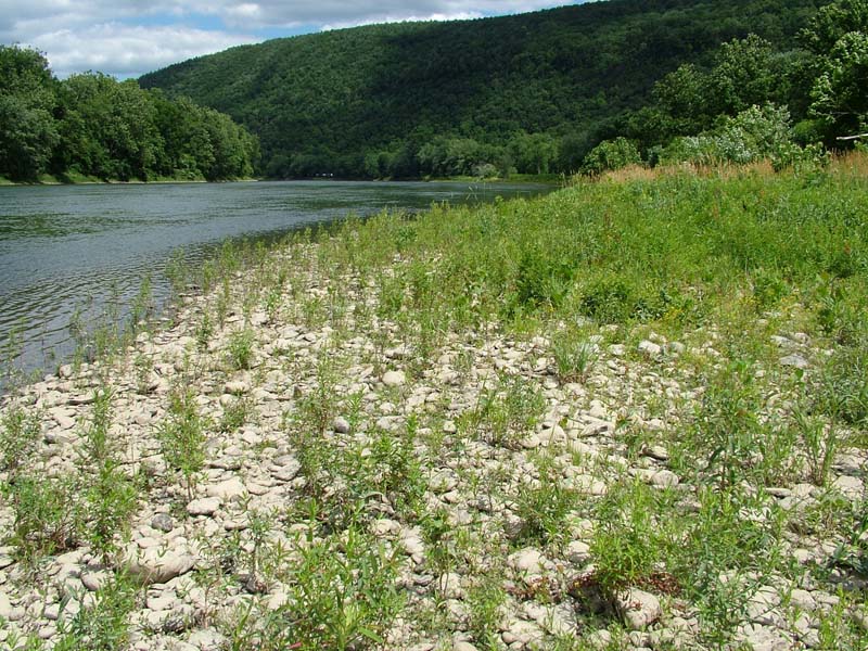 This community is found on all orders of streams, and in a wide variety of riverine settings including island heads, bars, spits, low terraces, and river banks. The underlying substrate also varies greatly, although it is often cobbles and sand with thin deposits of silt, muck, or organic matter. Species composition also varies greatly from site to site. The unifying factor influencing the species composition is the frequent inundation and scour that these sites experience. This community is generally situated in areas of the active channel that are underwater for the majority of the year and are exposed only at low water or in drought years. These areas are subjected to high water velocities, floods, and ice scour more frequently than many other herbaceous communities within the river floodplain system. The constant scour removes established vegetation and maintains or creates exposed sediments, cobbles, or bedrock. New seeds and plant propagules are constantly being dispersed to these areas by water, air, and animals. This causes a continual flux in species composition that is characteristic of this community.